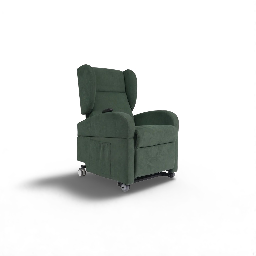 Fotoliul Gilda Electric combină funcționalitatea medicală cu eleganța designului. Este disponibil într-o gamă variată de culori – roșu, verde, albastru, tutun și piele ecologică în nuanță închisă – și poate fi integrat armonios în orice decor. Tapițeria din piele ecologică ignifugă adaugă un plus de siguranță și durabilitate, iar dimensiunile sale optime îl fac potrivit atât pentru locuințe, cât și pentru centre de îngrijire.